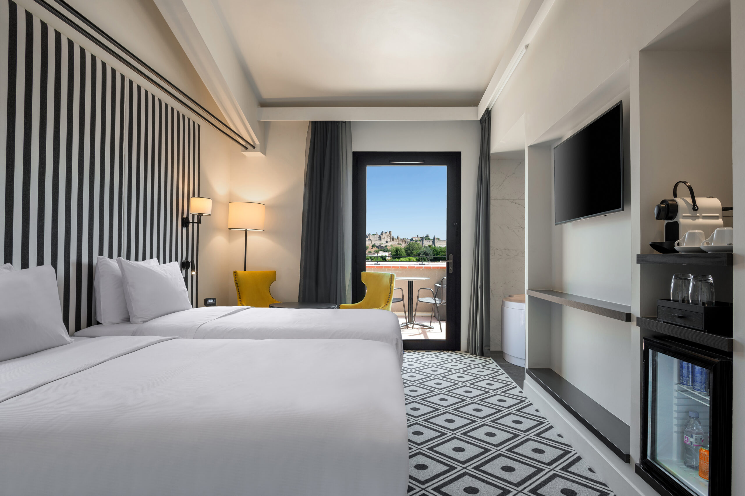De la chambre “Classique” de 27 m², offrant une vue sur le jardin, aux suites cossues deux pièces de 50 m² avec vue panoramique sur la cité médiévale, notre établissement saura vous combler lors de votre séjour !