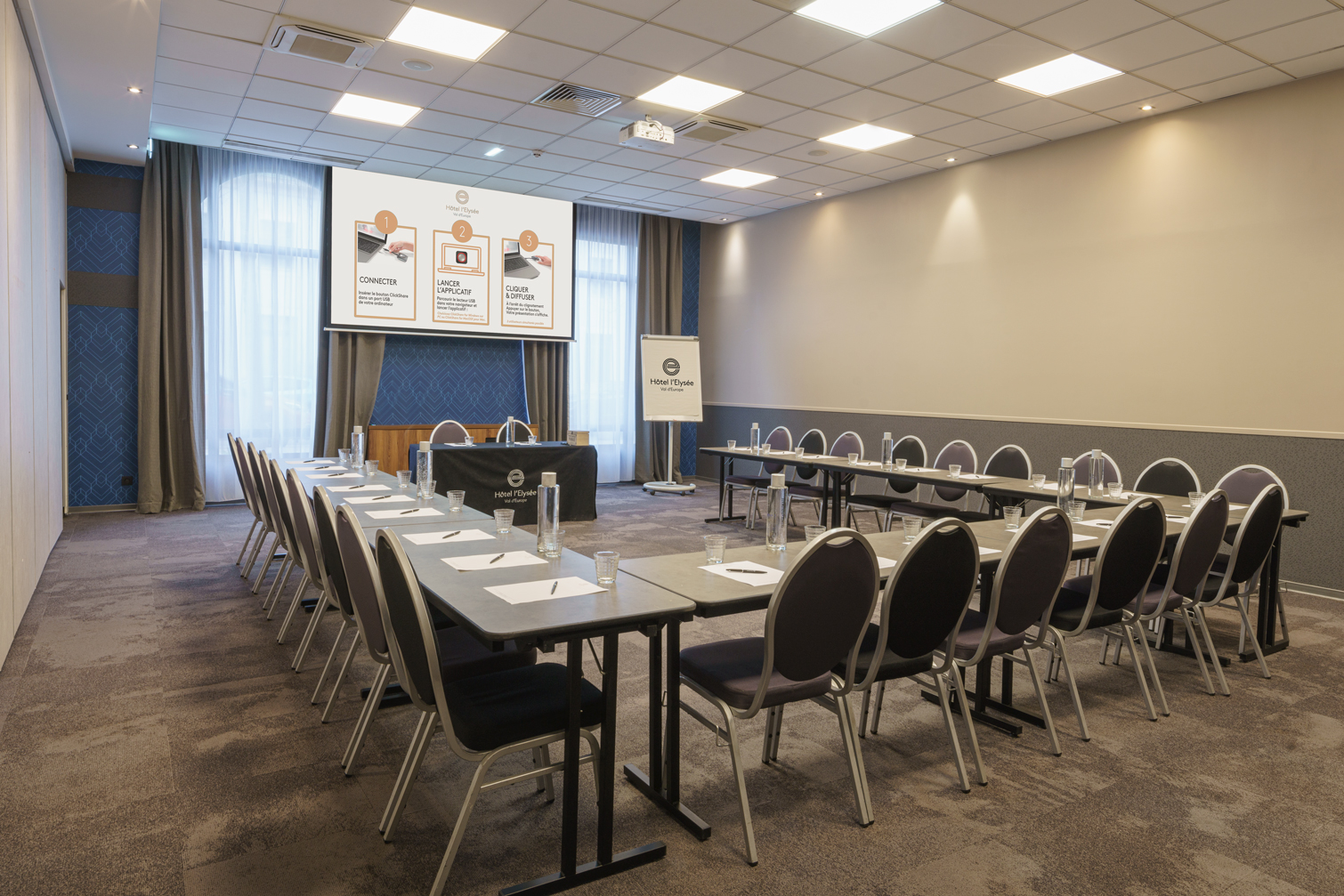 Notre hôtel dispose de 4 salles de réunion dont 186m2 de plénière, à la lumière du jour et modulables.